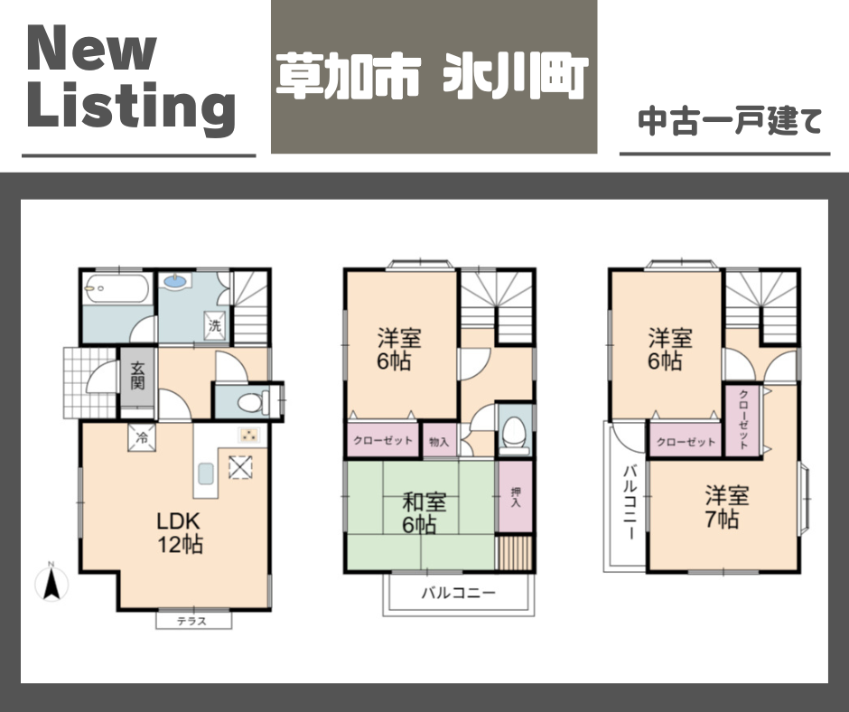 草加駅徒歩9分、南西角地で陽当り・通風良好。