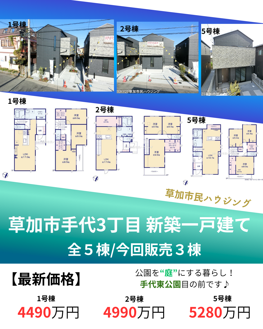 草加市手代3丁目 新築一戸建て 全5棟(今回販売3棟)