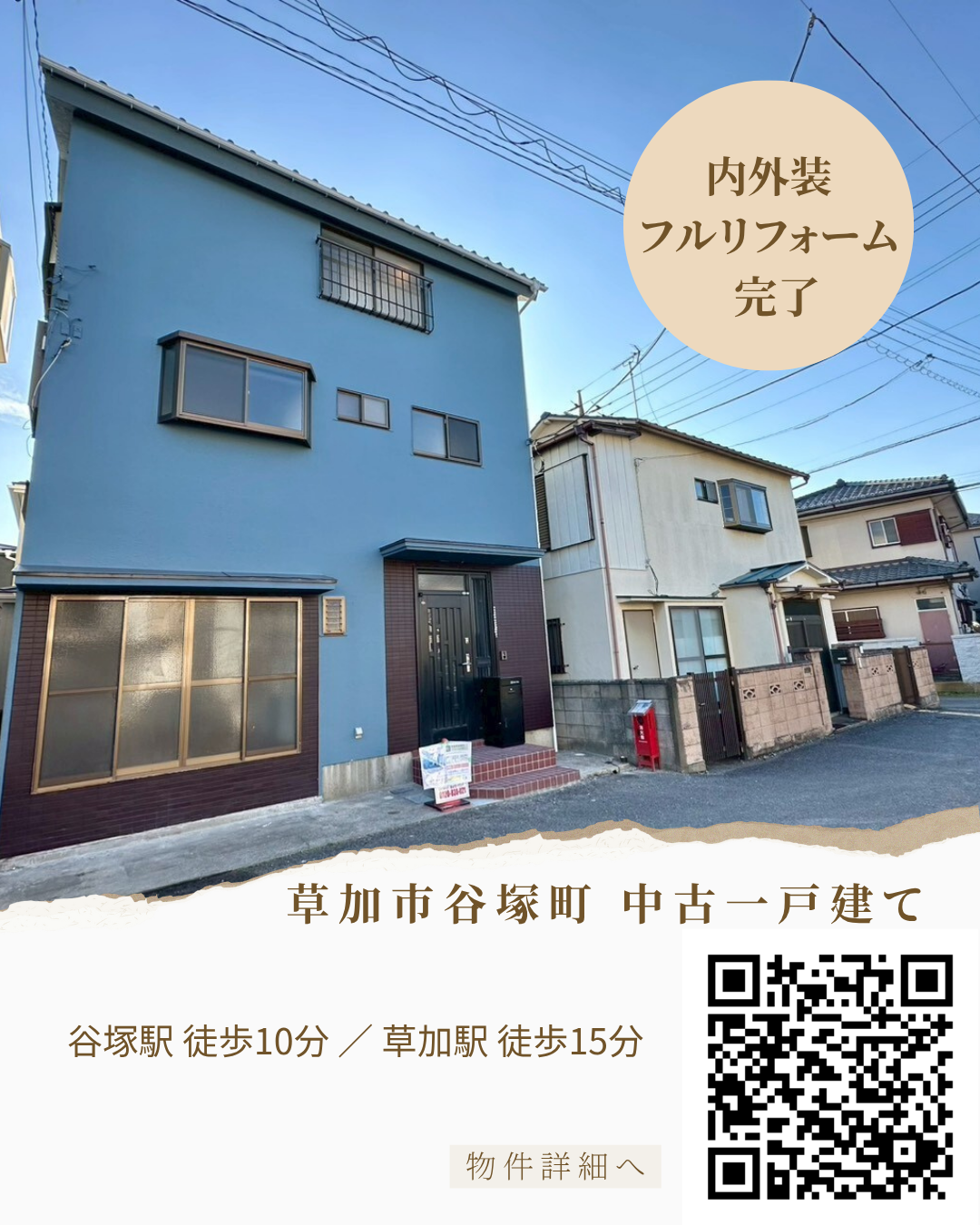 本日は、草加市谷塚町にて内外装フルリフォームが完了した中古一戸建てのご紹介です。