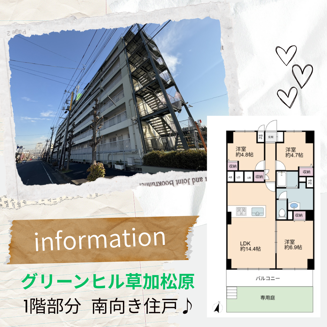 【お預かり情報】グリーンヒル草加松原 1階部分
