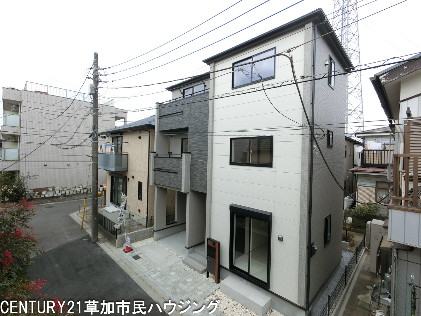 本物件は、草加駅徒歩12分の利便性に加え、南道路に面した明るい住環境が魅力の1棟現場です。