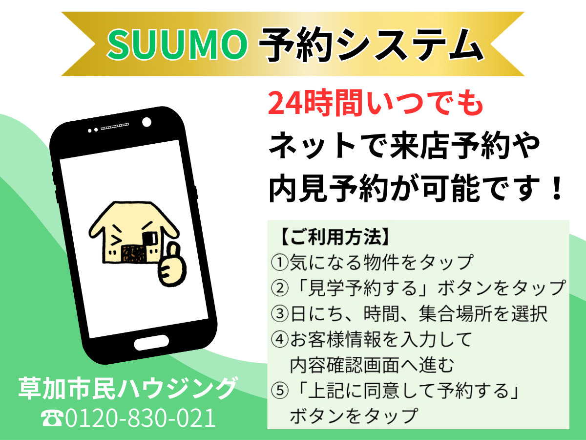 SUUMO予約(見学予約)システムを採用しています。