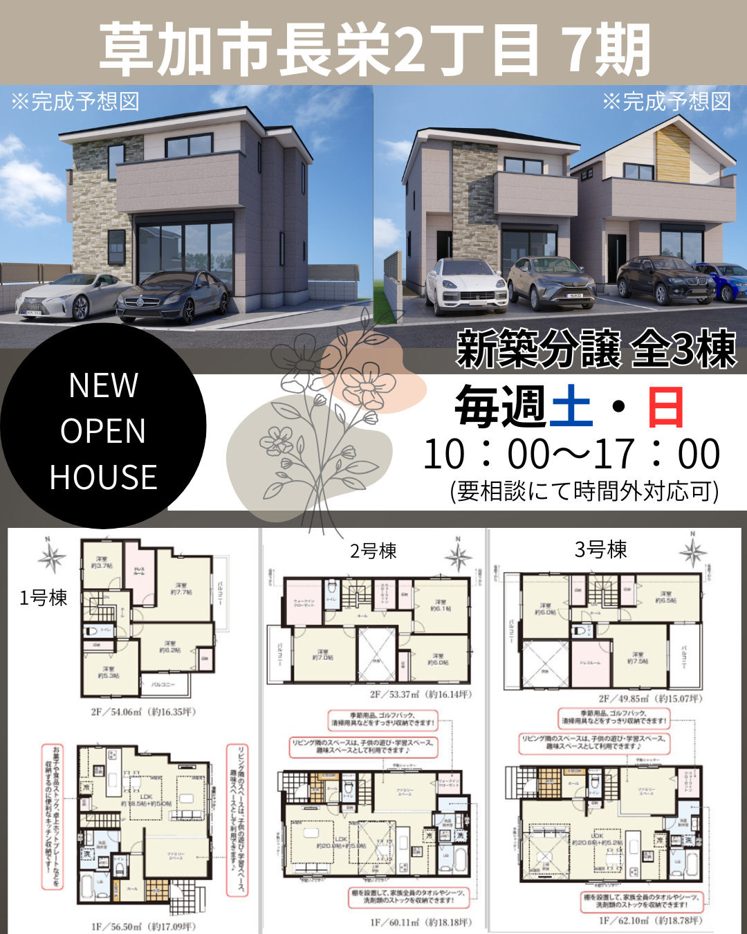 草加市長栄2丁目 新築一戸建て 7期全3棟