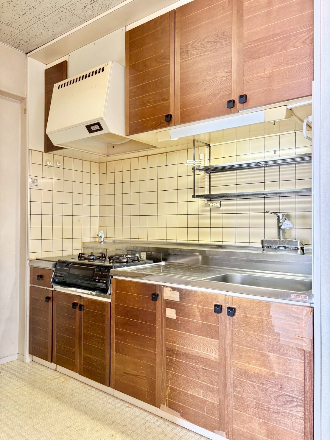 キッチン上下部の収納は、普段あまり使わない調理器具やストックの保管に便利。