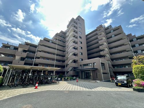 落ち着いた色調の外観で、草加駅徒歩19分の立地です。