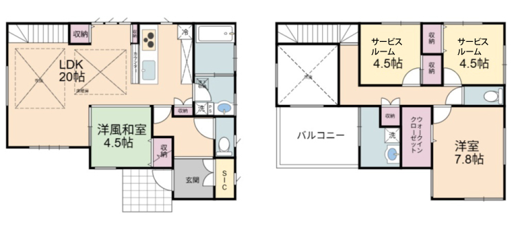 ウォークインクローゼット、シューズインクローク付きで収納も充実。