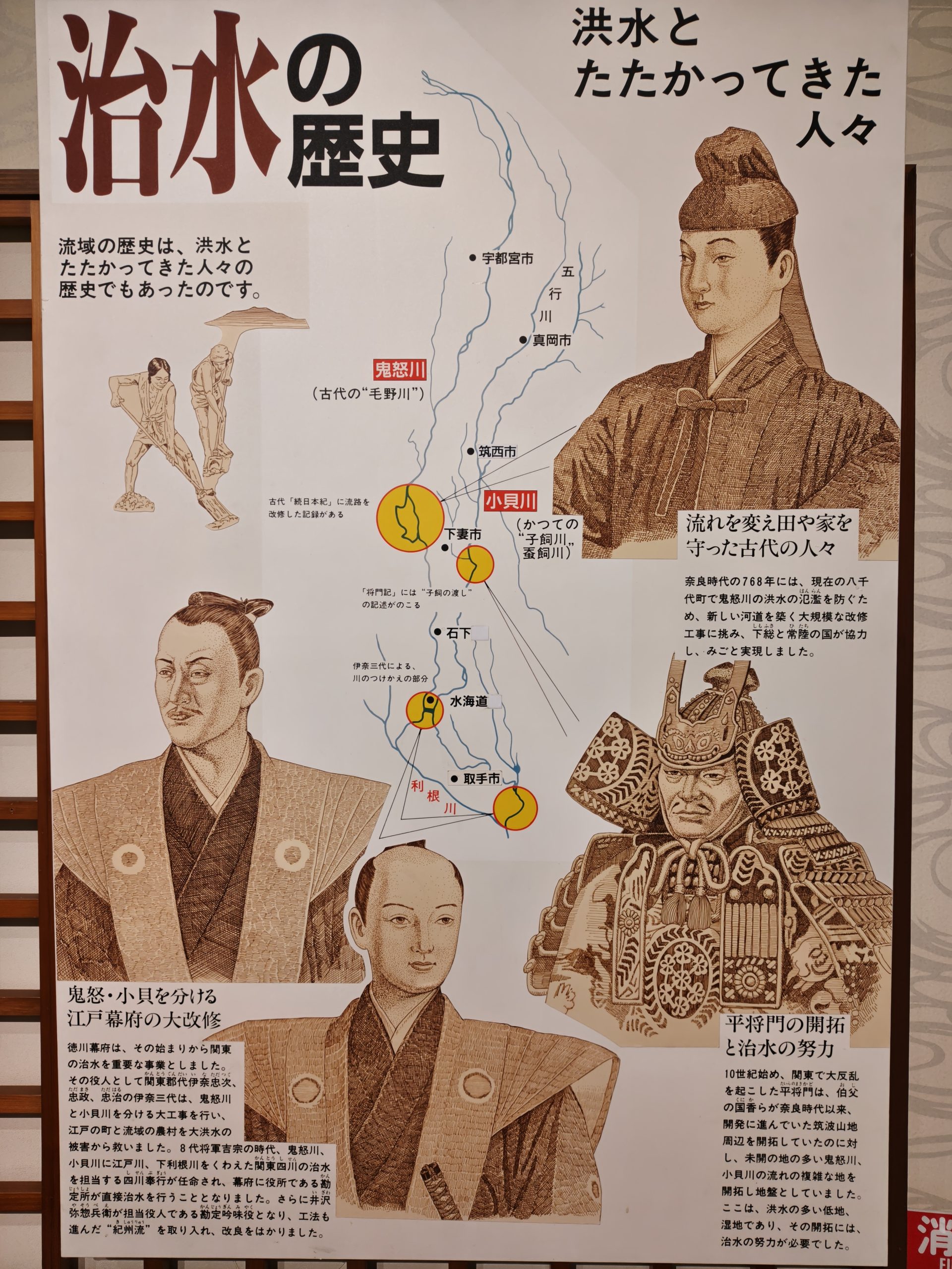 2015年の鬼怒川の堤防決壊の水害が、記憶に新しいですが、中に、治水の歴史が展示されています。