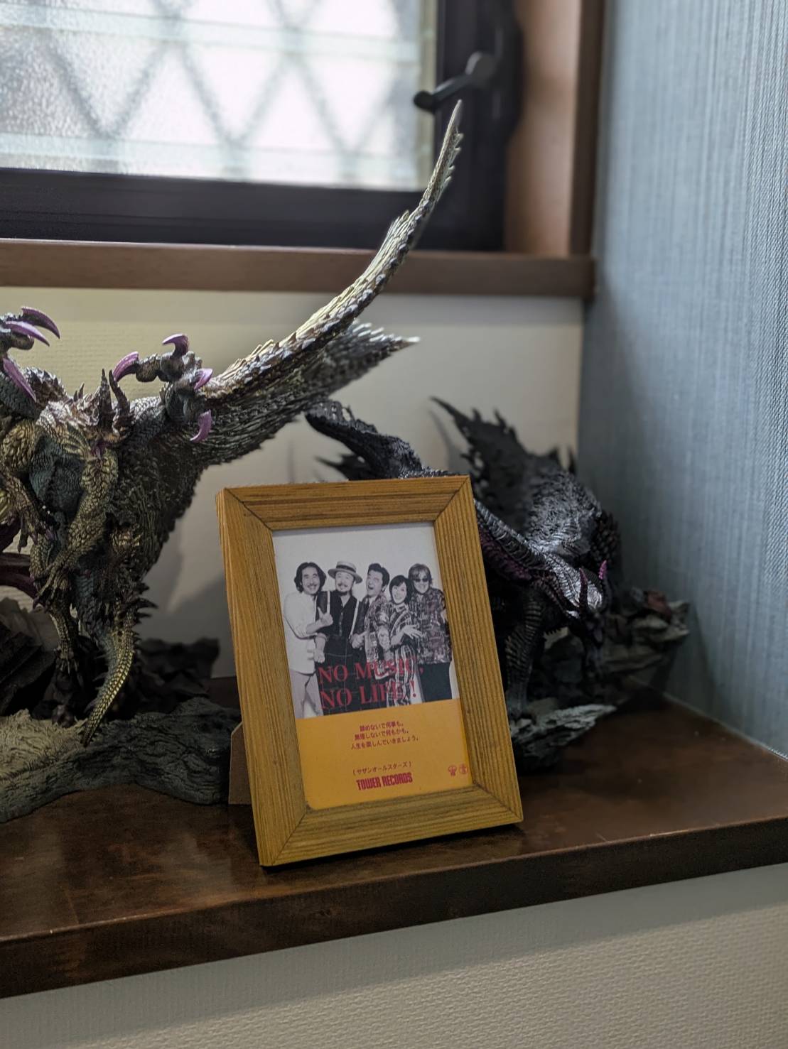 そして、その両隣には、息子が愛してやまないモンハン(モンスターハンター)の巨大フィギュアが鎮座! ちょっと異色の組み合わせ!