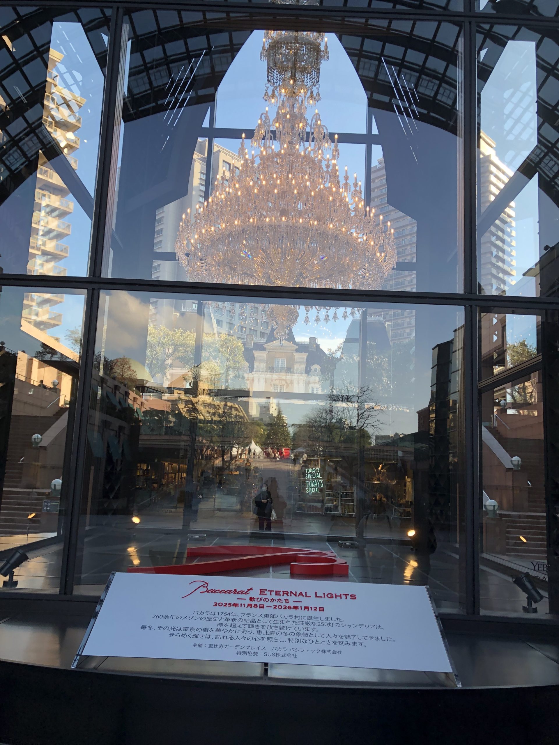 先日、妻と恵比寿ガーデンプレイスに行った際に、豪華なバカラのシャンデリアが展示してありましたので、写真を撮りました。