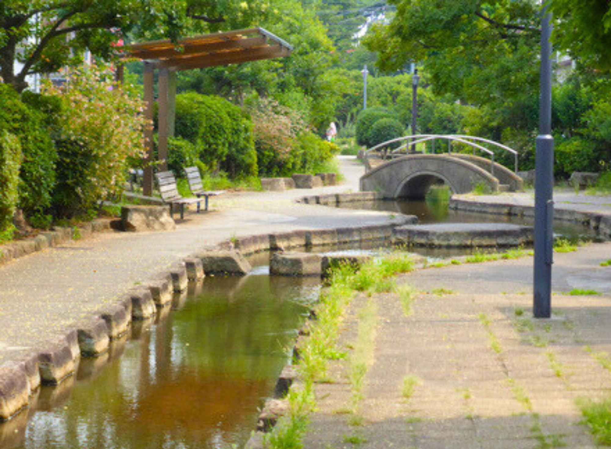 綾瀬川沿いにある芝生広場と水辺が特徴の公園。