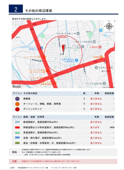 例えば今回、草加市稲荷4丁目 新築一戸建て 12期のATBB周辺レポートの一部をご紹介します。
