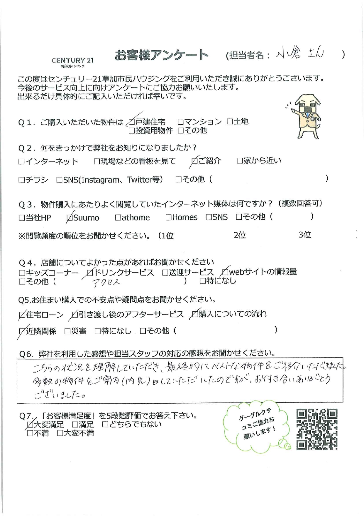S様にとって納得いただける「ベストな物件」が見つかり大変うれしく思います。