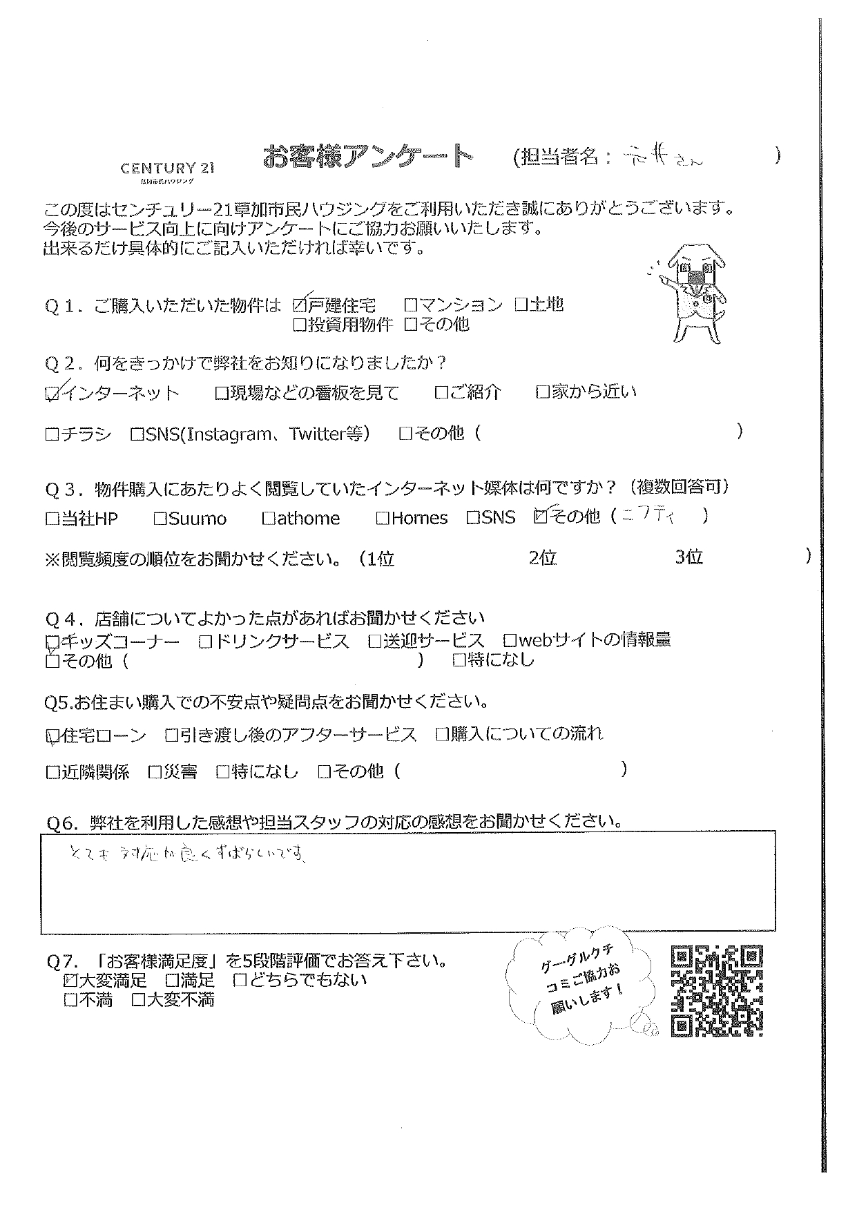 Q5.当社を利用した感想や担当スタッフの対応の感想をお聞かせください