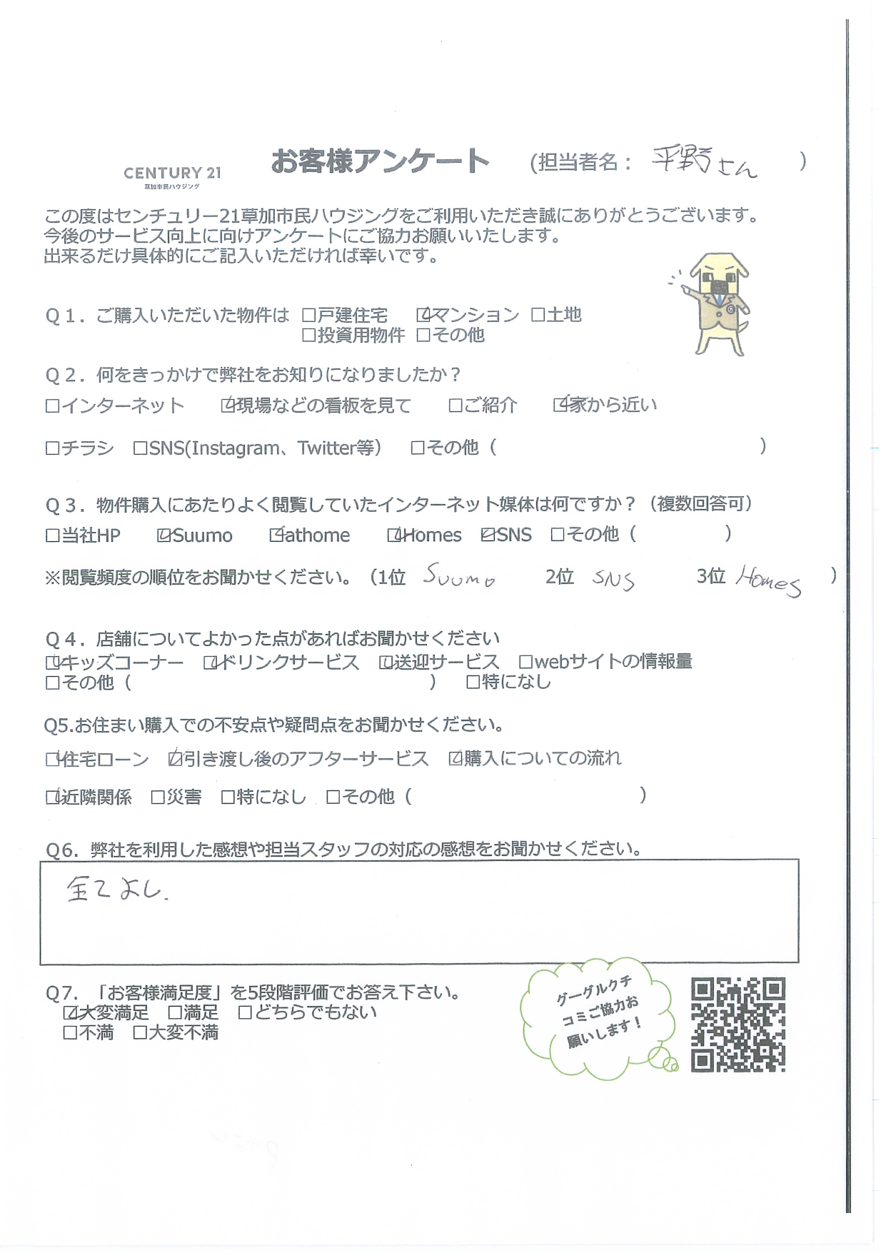 Q5.当社を利用した感想や担当スタッフの対応の感想をお聞かせください