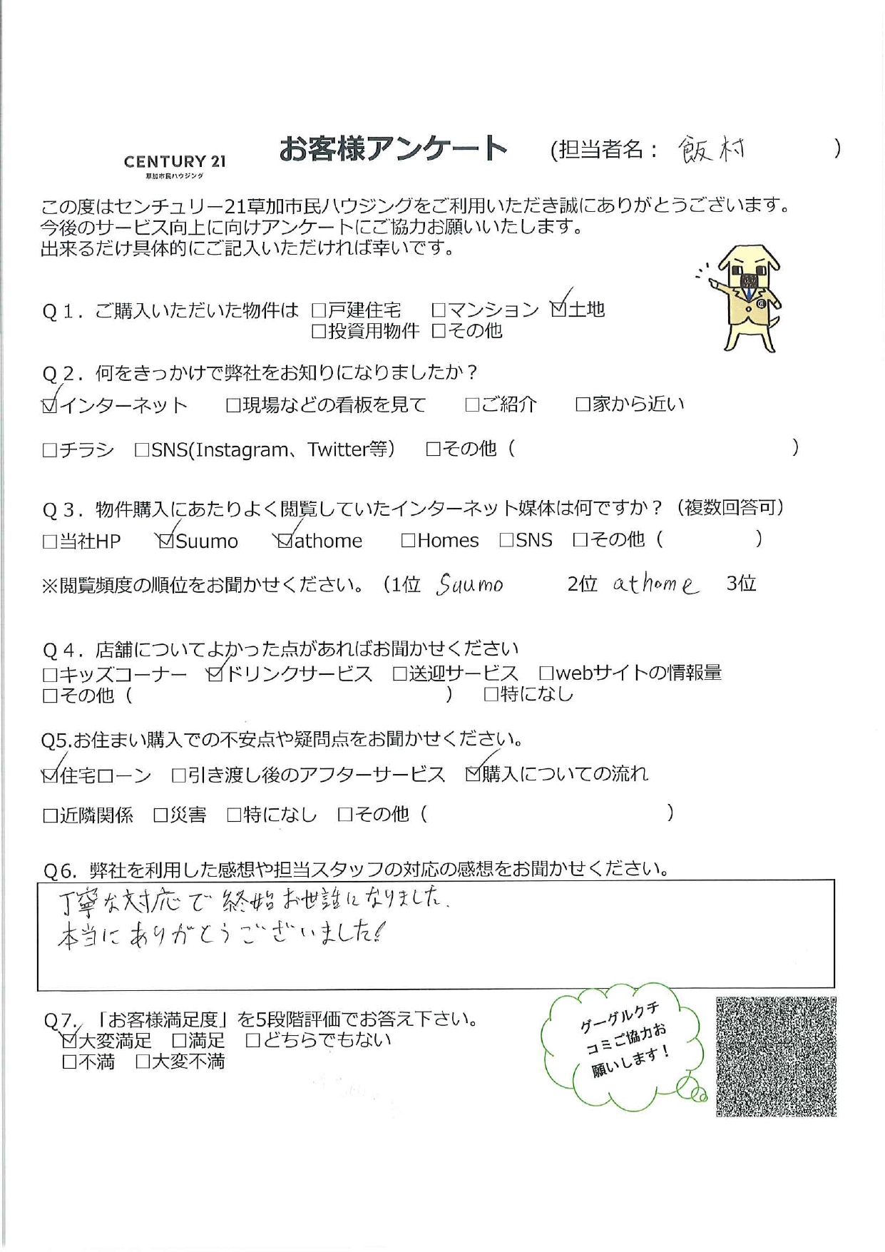 この度は、草加市民ハウジングをご利用いただき誠にありがとうございました。